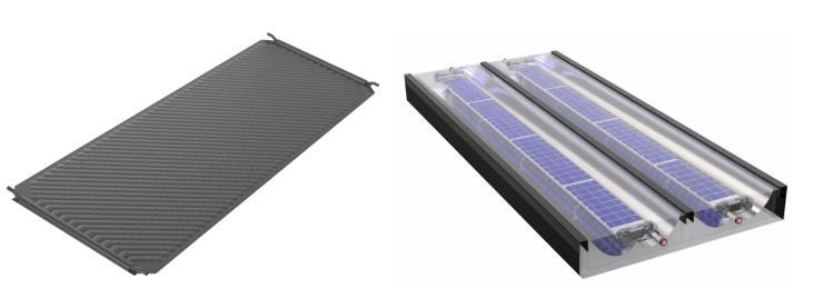 Exploded view of the first-generation PVT-MG receiver. Mirrors concentrate sunlight onto the lower absorber surface. Graphic: DTU